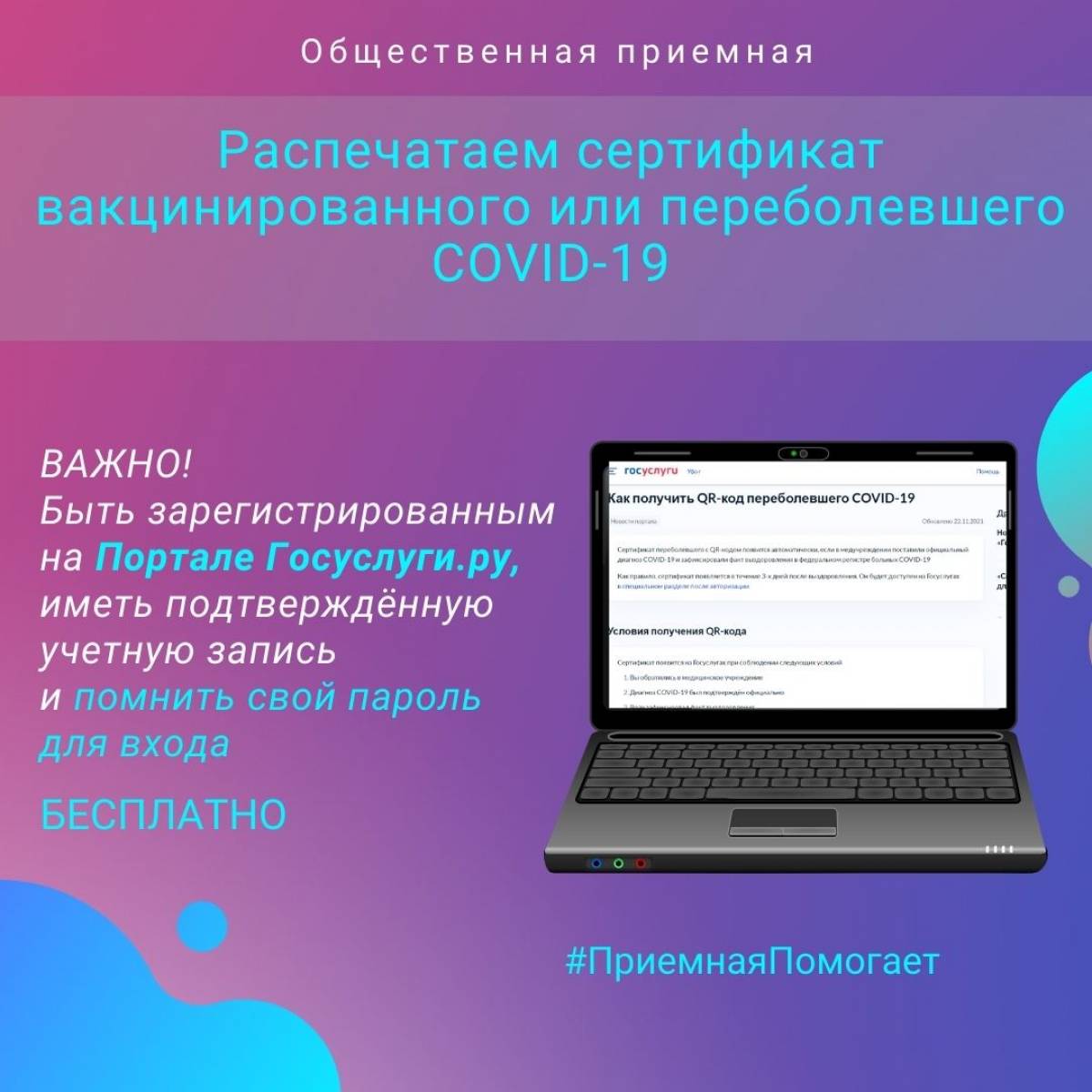 В Общественной приемной партии можно распечатать сертификат вакцинированного или переболевшего COVID-19